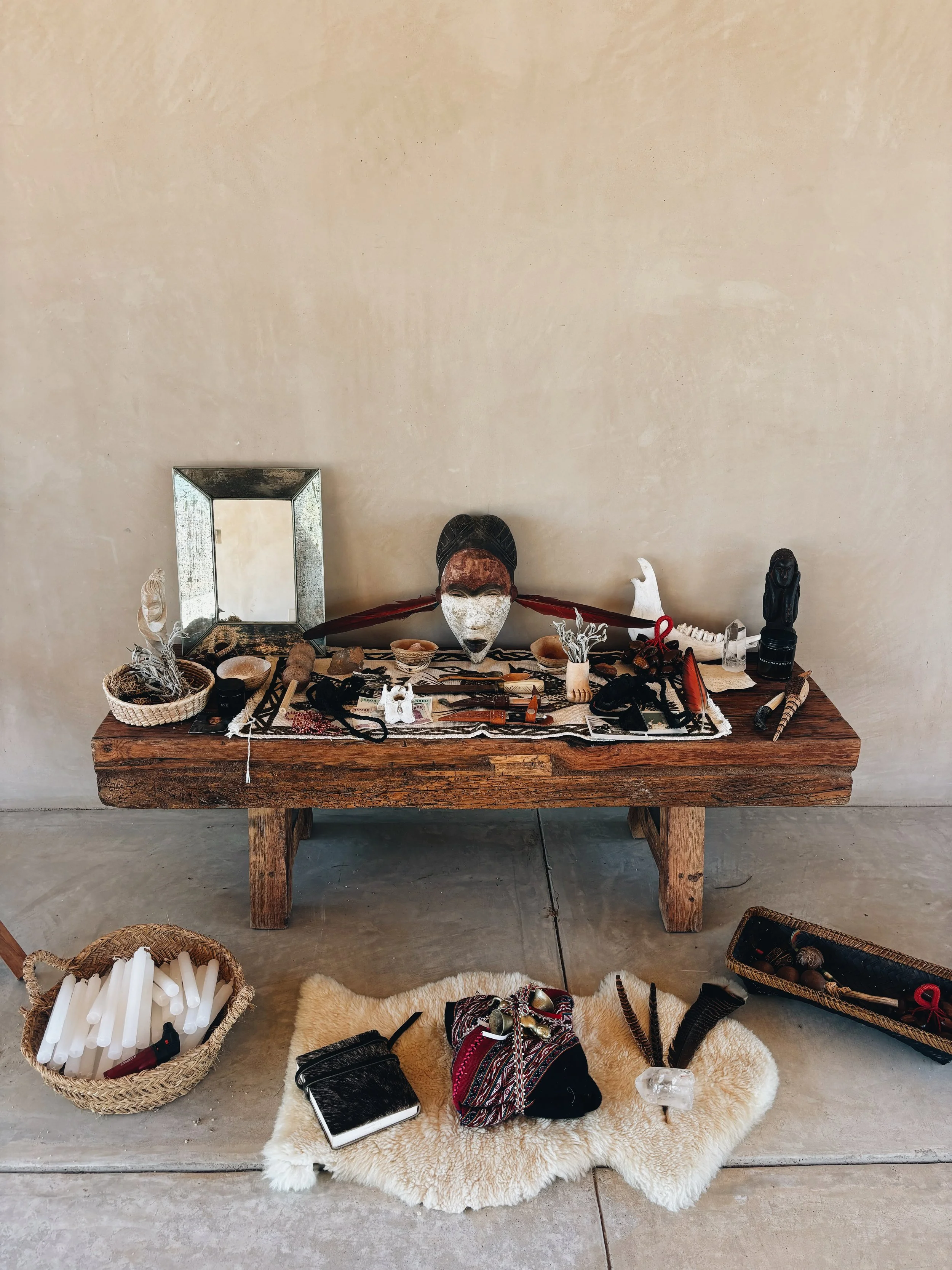 Offered as community ceremonies for local Baja residents and visiting travelers, these one-day containers are designed to be approachable both financially and energetically. They serve as an entry point into working within ETÉREO’s ceremonial framework, emphasizing preparation, reverence, and integration while maintaining a welcoming, inclusive atmosphere.